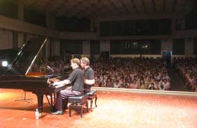 8月13-30日,以別具創(chuàng)意的表演手法演繹鋼琴的魅力與趣味,2010歐米勒孖寶“鋼琴瘋狂”中國(guó)巡演在上海、東營(yíng)、重慶、大連、杭州、石家莊、沈陽(yáng)等城市展開。由德國(guó)博蘭斯勒鋼琴基金會(huì)引入的德國(guó)頂尖級(jí)鋼琴家“歐米勒孖寶”(大寶、小寶)所到之處皆掀起了一股“鋼琴也瘋狂”的熱潮。歐米勒孖寶對(duì)音樂有著最本真的理解,隨性、自然、靈性,并以一種獨(dú)特的表演方式讓鋼琴充滿了無(wú)數(shù)的不可思議和趣味。讓鋼琴在小孩子的眼里不再只是枯燥而單調(diào)的“被學(xué)習(xí)”,而是變得充滿樂趣與吸引力!甚至打破固定的學(xué)習(xí)思維模式:哦!原來(lái)鋼琴還可以這樣來(lái)演奏!歐米勒孖寶的音樂會(huì)上,幾乎所有的小朋友們都爭(zhēng)著要上臺(tái)了和大寶、小寶同臺(tái)演出,不少小朋友還成為了歐米勒孖寶的忠實(shí)小Fans,開始喜歡鋼琴。