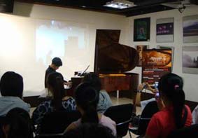 演奏中,觀眾都被跌宕優(yōu)美的旋律所吸引,現(xiàn)場(chǎng)非常安靜。演奏完畢,觀眾全體都熱烈鼓掌贊好。牛牛也高興地向大家介紹這兩首曲子是肖邦非常著名的練習(xí)曲《離別》與《革命》,并告訴現(xiàn)場(chǎng)觀眾這兩首曲子的在哪些地方體現(xiàn)出曲子的感情境界。這兩首曲子都收錄在了這張發(fā)行的碟中。