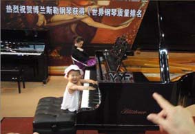 此次博蘭斯勒鋼琴展會現(xiàn)場展出了價值300多萬的博蘭斯勒155周年紀(jì)念版鋼琴。此臺鋼琴也可謂是博蘭斯勒鋼琴百年精湛工藝的一個縮影。這款特別的尤里烏斯·博蘭斯勒紀(jì)念版鋼琴,是公司成立155周年之際,為紀(jì)念尤里烏斯·博蘭斯勒對音樂的巨大貢獻(xiàn),并為他給博蘭斯勒家族留下流傳百年的無價世襲遺產(chǎn)表示深深的崇敬而特地制作的。博蘭斯勒家族后代對先人所取得的偉大成就和貢獻(xiàn)的崇拜、感激之情都深深凝聚在這架鋼琴上。博蘭斯勒鋼琴重要獎項都銘刻在這架尤里烏斯.博蘭斯勒紀(jì)念版的徽章上,做工考究的譜架和琴腿盡顯鋼琴的優(yōu)雅典美,制作大師近乎苛刻的精細(xì)工藝,每一個細(xì)節(jié)都力求完美,使得這架鋼琴散發(fā)出令人著迷的藝術(shù)風(fēng)采,吸引了眾多觀眾與之留念,反響熱烈,贊嘆喜愛之前溢于言表。