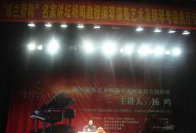 2009年11月22日下午14:00,由德國(guó)博蘭斯勒基金會(huì)、博 蘭斯勒鋼琴(中國(guó))有限公司、重慶音樂(lè)家協(xié)會(huì)鋼琴專業(yè)委員會(huì)、 西南大學(xué)音樂(lè)學(xué)院、重慶大學(xué)藝術(shù)系、重慶師范大學(xué)音樂(lè)學(xué)院、重 慶文理學(xué)院音樂(lè)學(xué)院、重慶長(zhǎng)江師范學(xué)院音樂(lè)學(xué)院及重慶提多名師 藝術(shù)培訓(xùn)基地聯(lián)合主辦,45家培訓(xùn)中心及琴行協(xié)辦并由重慶提多 鋼琴城及重慶文化宮藝術(shù)培訓(xùn)學(xué)校聯(lián)合承辦的中央音樂(lè)學(xué)院鼓浪嶼 鋼琴學(xué)校校長(zhǎng)、中央音樂(lè)學(xué)院原鋼琴系主任楊鳴教授《鋼琴演奏藝 術(shù)及鋼琴考級(jí)曲目》專題講座在重慶市文化宮禮堂隆重舉行。