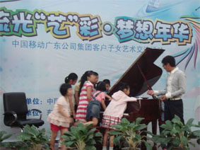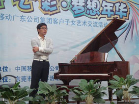 南方的夏季是多雨的季節(jié),更是變幻無常的季節(jié)!盡管5月 23-24日,東莞市連續(xù)兩天大雨傾盆,雷電交加,卻擋不住東莞琴 童家長望子成龍、望女成鳳的熱切心愿,更擋不住莞城琴童的求學(xué) 熱情。因為這兩天,中國移動廣東分公司為集團(tuán)客戶子女舉辦了一 場與鋼琴大師面對面的交流活動,這次難得的交流活動,是國際鋼 琴大師趙胤胤先生與有著黃金音色美譽的德國國寶博蘭斯勒鋼琴共 同攜手為東莞市琴童及家長們舉辦的一場別開生面的鋼琴交流會 —流光“藝”彩,夢想年華!