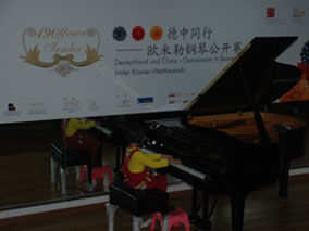 十二月十三日,德中同行—歐米勒鋼琴公開賽總決賽在廣州 大學(xué)城正式拉開序幕。4臺九尺博蘭斯勒及博蘭斯勒旗下海斯勒, 歐米勒總價值過千萬名琴匯聚廣州大學(xué)城。此次大賽的比賽、表 演用琴全部由博蘭斯勒公司提供。被譽為德國國寶的博蘭斯勒為了 支持本次大賽,并能讓選手能更好的發(fā)揮出自己的琴藝,特地從德 國空運到比賽現(xiàn)場為選手門吶喊助威,并由博蘭斯勒德國技師親自 主理。一號賽場的評委老師也是本屆大賽的評委會主席劉詩昆大師 對此琴評價頗高。博蘭斯勒鋼琴不但被譽為德國國寶,還是鋼琴中 的勞斯萊斯。它黃金般的音色為選手們的演奏增光異彩。