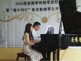 2008年9月20日下午14:00,由德國博蘭斯勒鋼琴(中國) 有限公司和星夜鋼琴網(wǎng)共同主辦、南京樂博琴行協(xié)辦的2008星夜 鋼琴網(wǎng)鋼琴愛好者交流會(huì)暨“德中同行”-歐米勒國際鋼琴公開賽 南京地區(qū)推廣活動(dòng)在江蘇省南京市樂博琴行漢中路店三樓音樂廳隆 重舉行。出席本次推廣活動(dòng)的嘉賓有:德國博蘭斯勒鋼琴(中國) 有限公司銷售部經(jīng)理詹八寶小姐、星夜鋼琴網(wǎng)總經(jīng)理曾繼桂先生、 旅法鋼琴家張韻小姐、著名鋼琴家法國巴黎國際鋼琴比賽第一名獲 得者馮頁先生、江蘇樂博樂器銷售有限公司總經(jīng)理胡俊先生及百多 位鋼琴愛好者。