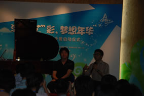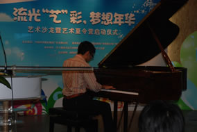 8月2日,由中國移動通信集團廣東有限公司主辦的,德國博 蘭斯勒全程支持的“流光‘藝’彩,夢想年華”藝術沙龍暨藝術夏令 營啟動儀式在市少年宮隆重舉行。盡管天氣炎熱,但仍阻擋不了孩 子們虔誠熱情的步伐。一大早少年宮演藝廳座無虛席,靜靜等候與 藝術大師面對面交流。