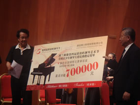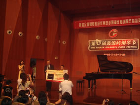 第四屆鼓浪嶼鋼琴節(jié)重要組成部分之一的首屆全國鋼琴考級 優(yōu)秀選手展演頒獎音樂會24日上午10:00在鼓浪嶼音樂廳舉行, 手捧鮮花和獎杯的各地青少年選手將他們年輕又嫻熟的鋼琴演奏技 藝與鼓浪嶼的舞臺輝映得熠熠生輝。這標志著首屆全國鋼琴考級優(yōu) 秀選手展演比賽落下帷幕。本次閉幕式頒獎音樂會上,優(yōu)秀選手及 各級金牌得主為贏得德國名琴歐米勒價值3.58萬元卡羅( CARLO)而展開了激烈的角逐。讓我們比較感動的是來自地震災 區(qū)—羅新的演奏,雙目失明的他在博蘭斯勒鋼琴上將其完美的一面 盡情的顯現(xiàn)出來。經(jīng)過緊張的現(xiàn)場比賽及評委們的評定,最終大獎 被福建省音協(xié)選送的陳煒隆小朋友所奪。