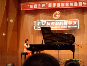 李晨音,一位來自英國的優(yōu)秀鋼琴家。2001年在第六屆蘇格 蘭國際鋼琴比賽榮獲金獎(jiǎng)并喜得一臺(tái)博蘭斯勒三角鋼琴,中國青年 鋼琴家李晨音就此與博蘭斯勒結(jié)下了不解之緣, 成為博蘭斯勒的藝 術(shù)家。在20日晚19.30的第四屆鼓浪嶼鋼琴節(jié)的系列音樂會(huì)上,她 與博蘭斯勒再次偶然的重逢并且攜手演繹了一場獨(dú)特的演奏會(huì)。在 演奏會(huì)開始時(shí),李晨音小姐向觀眾朋友們介紹了本場演奏會(huì)的曲目 以及為何選擇這些曲目,當(dāng)她講到肖幫的慢板“送葬進(jìn)行曲 Marche funebre”時(shí),她用顫抖的聲音告訴大家,“作為中國 人,雖然身處他鄉(xiāng)。但心系國內(nèi)。5.12的汶川大地震牽動(dòng)著海外 游子的心,作為華人鋼琴家,將用這首曲子獻(xiàn)給災(zāi)區(qū)的受難的同胞 ”;當(dāng)李晨音小姐在演奏這首“送葬進(jìn)行曲Marche funebre” 時(shí),在場的觀眾眼里都含著淚水,李小姐充滿感情的演奏,贏來了 一陣又一陣的掌聲。除了外國的名曲外,博蘭斯勒鋼琴家李晨音小 姐還演懌了高平的“思鄉(xiāng)”“遙遠(yuǎn)的聲音”以及中國情歌“康定情 歌”等等,在她那溫柔又充滿霸氣的琴音中。博蘭斯勒鋼琴再次的 被賦予了靈魂,將博蘭斯勒黃金般的音色完美的展現(xiàn)給全場的觀眾 朋友們,也將李晨音小姐的思鄉(xiāng)之情完整的表現(xiàn)出來。在場的觀眾 和評(píng)委們都給李晨音小姐精湛的技藝,豐富的情感深深的打動(dòng)了。 掌聲久久不息,場內(nèi)的觀眾也久久不愿散去……