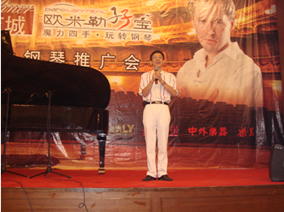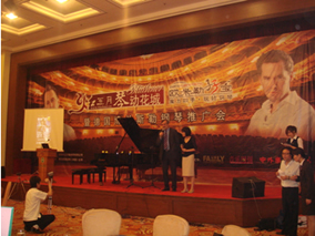 5月22日“火紅五月 琴動(dòng)花城”博蘭斯勒廣州品鑒會(huì)在廣東迎 賓館宴會(huì)廳絢麗盛開。倪紅閃爍,旋律蕩漾,伴著悠揚(yáng)的鋼琴曲, 一走進(jìn)會(huì)場(chǎng)就可以發(fā)現(xiàn)一直鋪到舞臺(tái)中央的紅地毯上八臺(tái)工藝制作 精美的博蘭斯勒(Blüthner)、海斯勒(Haessler) 、歐米勒 (Irmler)、塞勒(Schiller)品牌鋼琴悉數(shù)陳放,舞臺(tái)中央擺放的是 尊貴、大氣博蘭斯勒九尺三角鋼琴(MODEL1),整個(gè)大廳就象 是一個(gè)歐洲的宮廷,金碧輝煌的掉燈,美侖美奐的歐式風(fēng)格造型, 高雅的相筐墻裱畫,又感覺是走進(jìn)了鋼琴博物館。