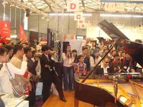 2007年10月17日至20日,上海國際樂器展在上海新國際展 覽中心隆重舉行。本次展會德國國寶-博蘭斯勒鋼琴陣容強大,展 位面積近200平方。本次展會展出了博蘭斯勒旗下博蘭斯勒、海斯 勒,歐米勒,塞勒等品牌的德國原裝及在中國組裝的二十幾個品種 及型號的鋼琴。并請來歐米勒形象代言人德國頂尖鋼琴表演藝術(shù)家 歐米勒孖寶鋼琴組合:歐米勒大寶-斯蒂芬(STEPHAN WEH) 和歐米勒小寶-馬賽爾(MARCEL DORN)為歐米勒鋼琴品牌做 品牌推廣大使,并現(xiàn)場為展覽會客戶及觀眾帶來瘋狂的鋼琴表演。