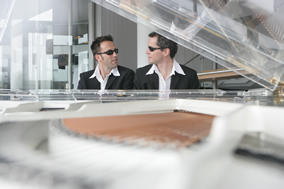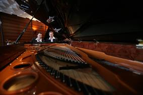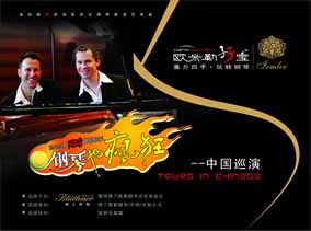 10年前 , 他們正式組成“歐米勒孖寶(Pianotainment)” 鋼琴組合 , 那是他們走向輝煌的開始:熟練自如的雙手在黑白分明 的琴鍵上翻飛跳躍,一曲曲快樂的音符就從他們的指間順流而出 。隨著歐米勒孖寶5張CD的成功問世 , 他們隨之聲名鵲起 , 在柏林 、巴黎、倫敦、紐約、拉斯維加斯等世界著名大都市的國際舞臺上 演奏。如今歐米勒孖寶已蜚聲樂界 , 成為歐美鋼琴明星,給古老的 鋼琴演奏形態(tài)注入了新的活力 , 并多次摘走包括英國牛津鋼琴挑戰(zhàn) 賽的“最佳創(chuàng)意獎”等在內世界各地的大小獎項 , 藝術事業(yè)蒸蒸日 上,如日中天。