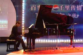 2 月15日 ,百事可樂(lè)千里傳情-藍(lán)色無(wú)言浪漫之夜音樂(lè)會(huì)于廣 州市正佳廣場(chǎng)隆重舉行?;顒?dòng)由百事音樂(lè)與博蘭斯勒鋼琴中國(guó)公司 共同舉辦,為確保音樂(lè)會(huì)現(xiàn)場(chǎng)演奏的最佳效果,博蘭斯勒鋼琴中國(guó) 公司專為此次音樂(lè)會(huì)提供一臺(tái)價(jià)值140多萬(wàn)元人民幣的專業(yè)演奏九 尺三角鋼琴。殿堂級(jí)鋼琴藝術(shù)家趙胤胤為熱情的觀眾獻(xiàn)上一曲曲優(yōu) 美動(dòng)聽的世界名曲,這些曲目都來(lái)自最新發(fā)行的專輯——《無(wú)言的 浪漫》。除了頃情演奏專輯中的鋼琴曲目,趙胤胤還創(chuàng)新嘗試與百 事音樂(lè)的吉他、貝司等合作表演,更是別有一番韻味在其中。