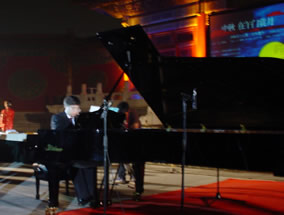 晚會上最精彩的節(jié)目當推世界著名華裔鋼琴家盛原先生的鋼琴 演奏。據(jù)悉,這是有史以來第一次世界頂級鋼琴進入故宮做演出。 博蘭斯勒鋼琴清澈、圓潤、飽滿的黃金般音色令在場嘉賓為之深深 陶醉,博得陣陣雷鳴般掌聲。
