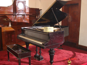 電視劇《海上明珠》攝制組在青島迎賓館取景,驚喜的發(fā)現(xiàn)迎賓館內(nèi)有一臺產(chǎn)于1876年德國的博蘭斯勒(Blüthner)三角鋼琴。筆者利用出差機會專程前往青島迎賓館探究這臺博蘭斯勒古鋼琴的魅力。