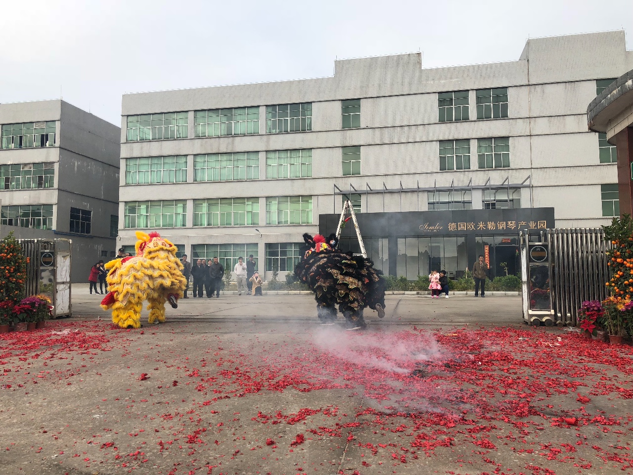 2月23日年初八,位于廣州的德國(guó)國(guó)寶博蘭斯勒鋼琴旗下歐米勒鋼琴?gòu)V州廠區(qū)鑼鼓喧天,醒獅高躍采青接福。醒獅舞不單國(guó)內(nèi)有名,且揚(yáng)名海外,海外的華人華僑均有舞醒獅的習(xí)俗。簡(jiǎn)單而隆重的傳統(tǒng)醒獅活動(dòng)讓廣州歐米勒工廠洋溢濃濃的節(jié)日氣氛,帶著躊躇斗志迎接新一年的挑戰(zhàn)!