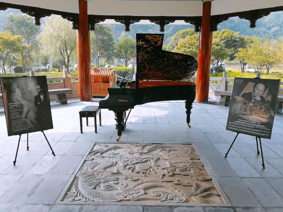 在黃龍洞景區(qū)展出的德國博蘭斯勒定制版鋼琴四季,與傳神的建筑融為一體