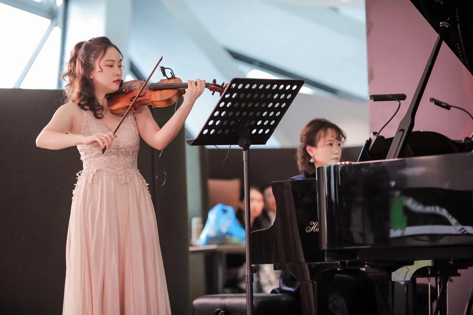 青年鋼琴家歐陽菁,余捷,盧格霖,徐韻,李艷,岑曉琳;青年小提琴家袁琛兒,朗誦者王源淵、旅德女中音戴佳榮;雕塑家何子豪等青年藝術(shù)家參與了本場音樂會。兩架傳承了五代人悠久精湛工藝和獨(dú)特創(chuàng)新系統(tǒng)的德國博蘭斯勒旗下海斯勒三角鋼琴以特別的表現(xiàn)力結(jié)合出色的協(xié)調(diào)性,給嘉賓們帶來了深刻的音樂感受!